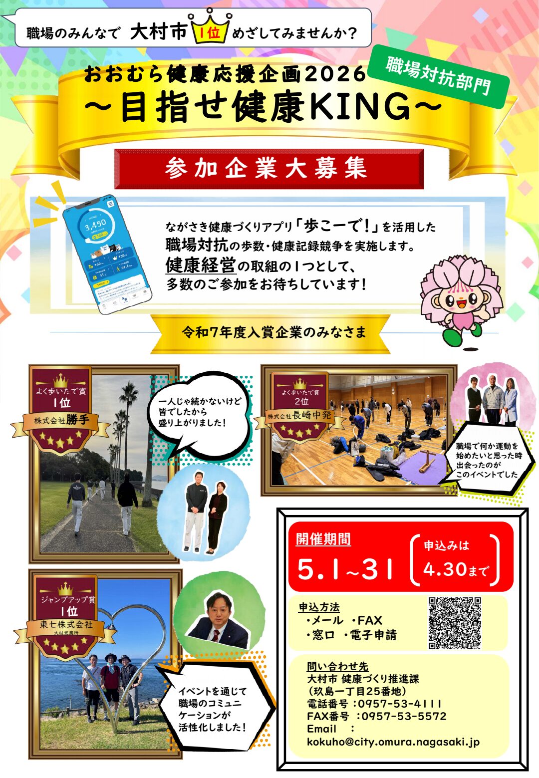 「おおむら健康応援企画2026 ~目指せ健康KING(職場対抗部門)~」を実施します。
